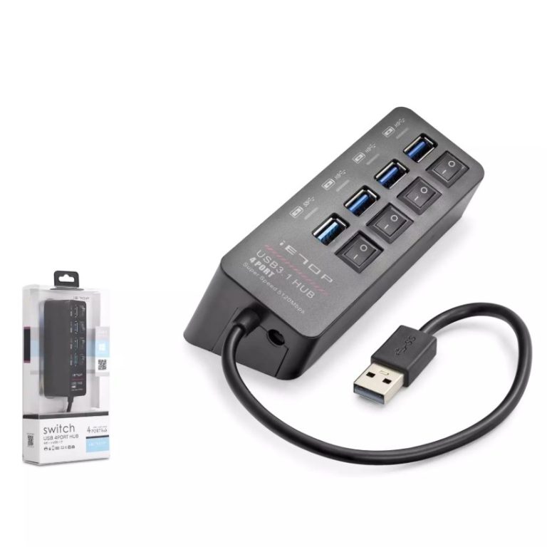 Hadron HDX7056 USB 3.1 Hub Anahtarlı 4 Port 5Gbps Çoklayıcı – Siyah – 1 ADET