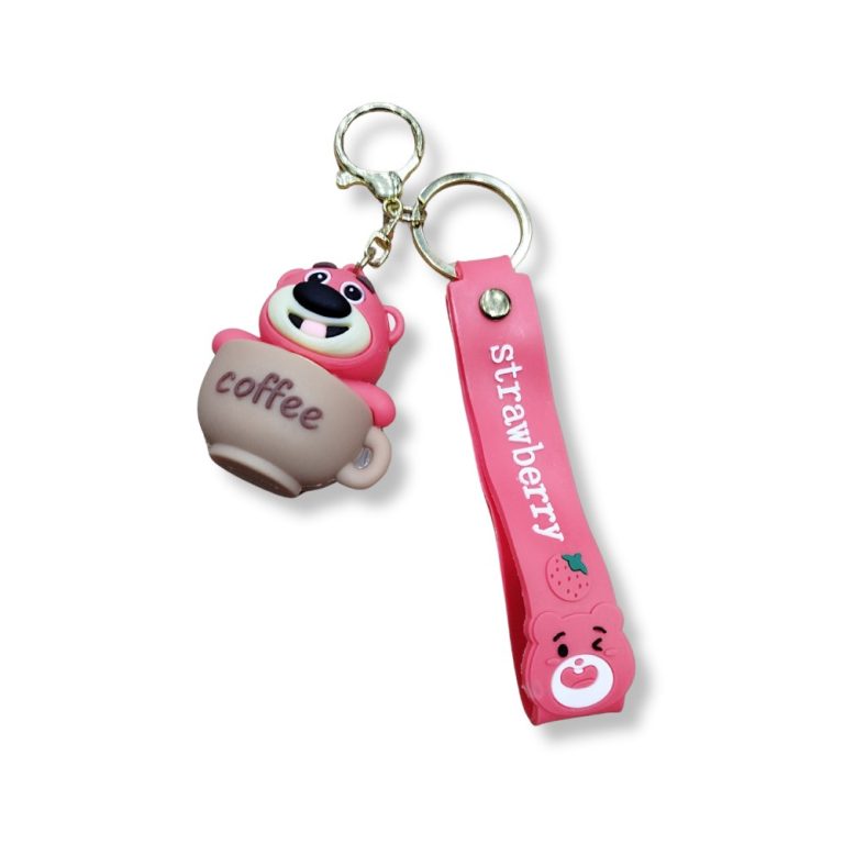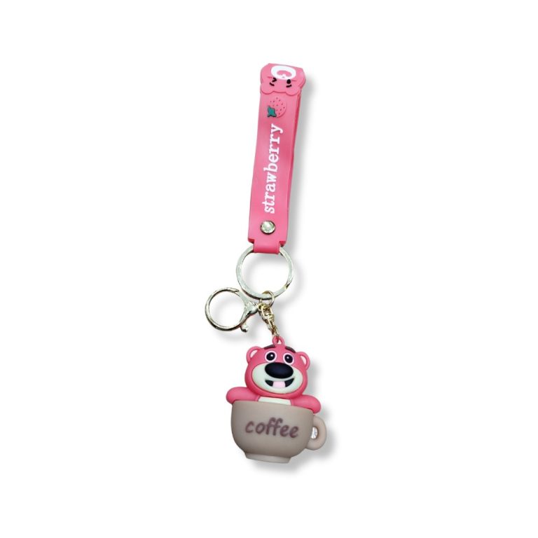 Lotso Bear Çilek Detaylı 3D Figürlü Pembe Bilek Kayışlı Anahtarlık – 1 ADET
