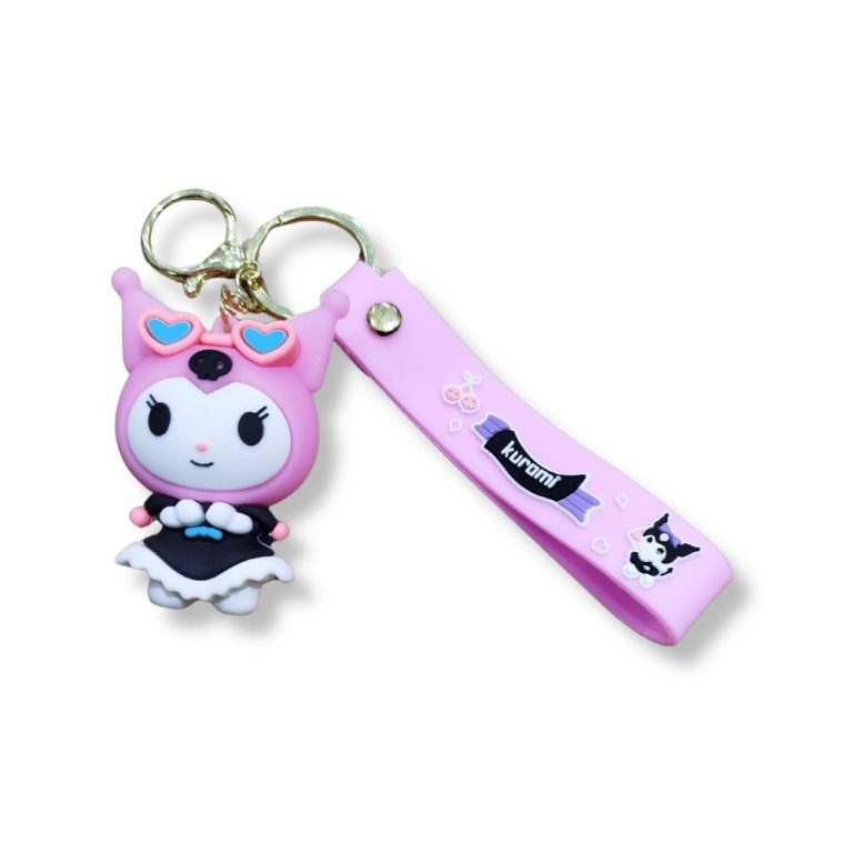 Kuromi v2 Premium 3D Figürlü Klasik Siyah Bilek Kayışlı Anahtarlık – 1 ADET