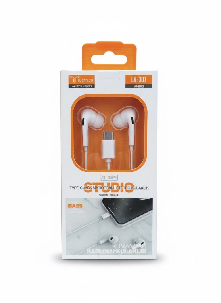 Lucatech LH-307 Type-C Mikrofonlu Stereo Kulak İçi Kulaklık – Beyaz