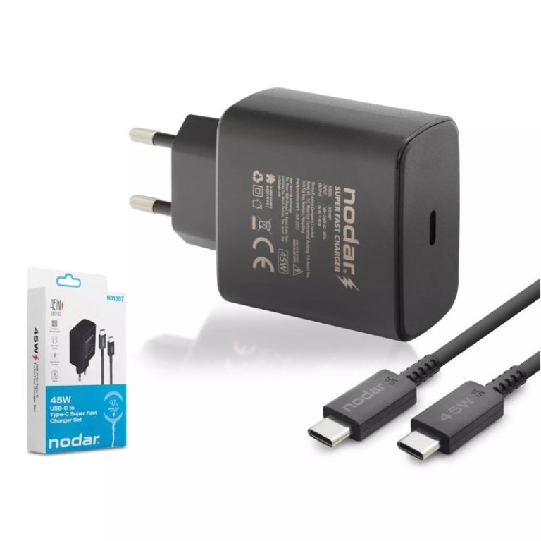 Nodar ND1007 Type-C PD Hızlı Şarj Seti 45W Super Fast Şarj Adaptörü ve Kablosu – Siyah – 1 ADET